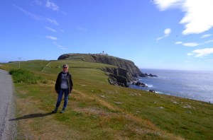 Karen with Sumburgh Head behind